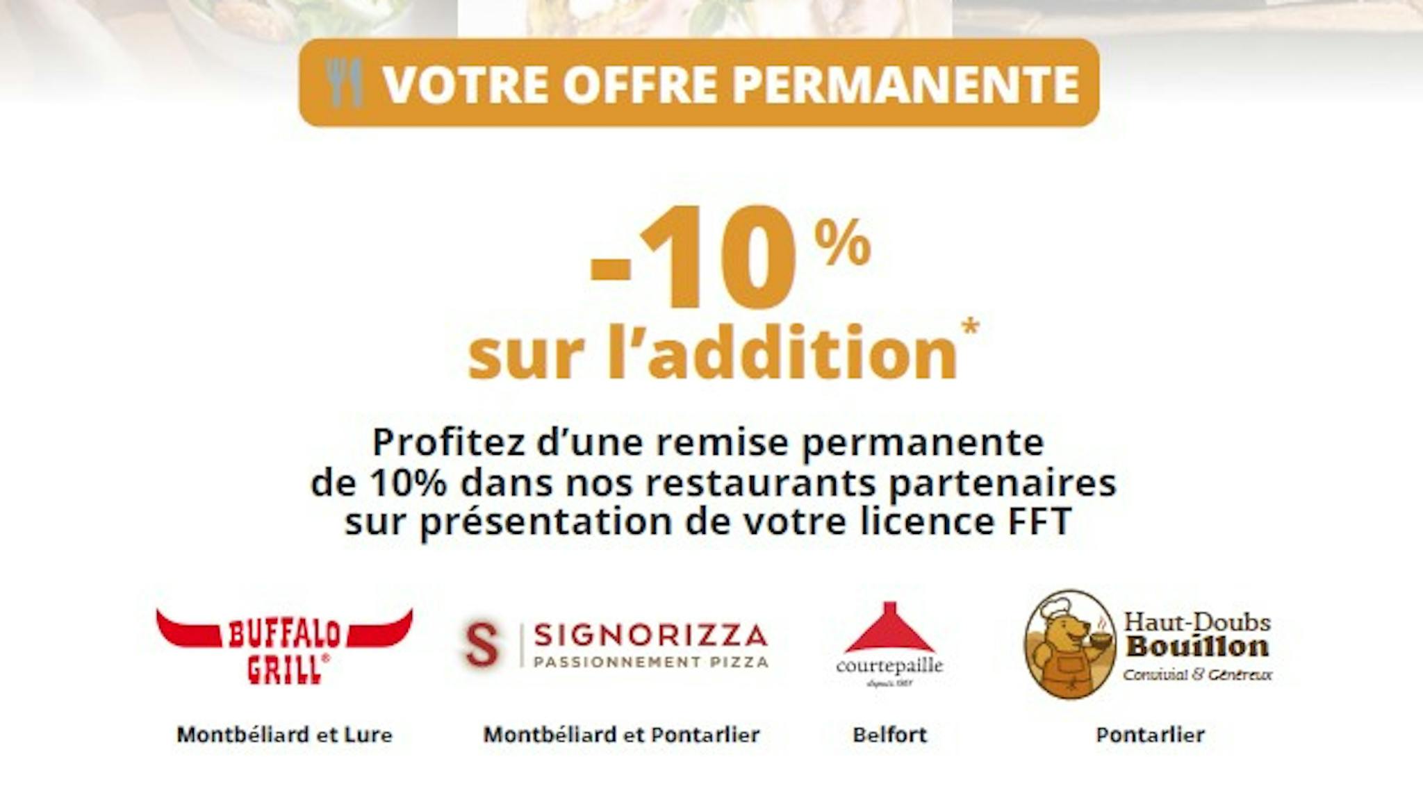 Sur présentation de votre licence FFT valide pour la saison en cours, bénéficiez de remises chez nos partenaires gourmands